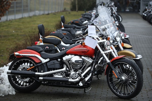 Harley-Davidson motorcycles stand on display at a dealership in Potsdam, Germany, on March 8, 2018.Sean Gallup/Getty Images