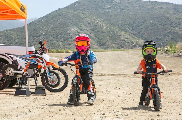 Mini bikes such as these 2020 KTM Factory Replica STACYCs can be ridden by children as young as four.Courtesy of manufacturer
