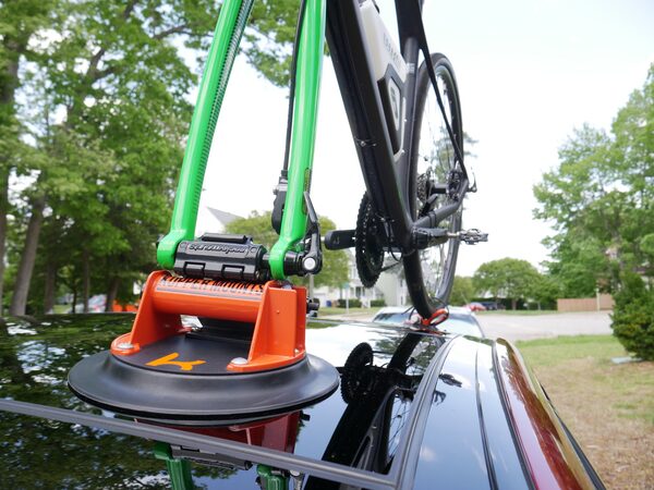 If large sheets of glass can be transported using suction cups, why can’t suction cups attached to your vehicle transport your bike? That was the question Andrew Jarrard of Raleigh, N.C., asked when he was trying to create a lightweight inexpensive bike rack for a single bike. His Kupper Mounts have not hit the market yet, but the instant success on Kickstarter shows a lot of people have faith in the system that should be available by this fall.