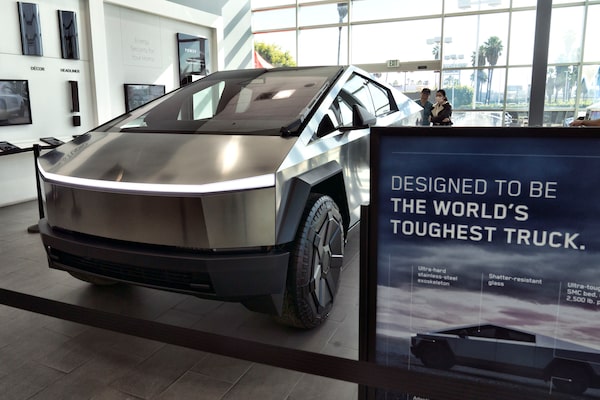 A Tesla Cybertruck on display at the Tesla showroom in Buena Park, Calif. on Dec. 3.Richard Vogel/The Associated Press