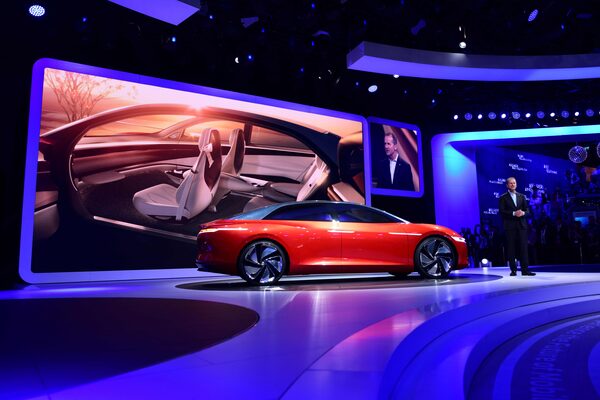 Herbert Diess, CEO of Volkswagen, introduces the Volkswagen concept car I.D. Vizzion during its launch at the Beijing Auto Show on April 25, 2018.WANG ZHAO/Getty Images
