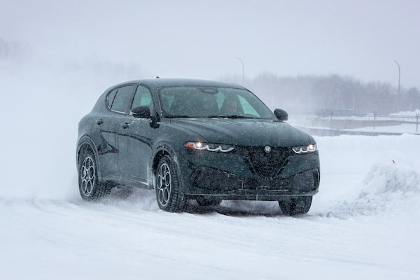 A 2026 Alfa Romeo Tonale Sprint trim challenging the technical iCAR ice and snow track in Mirabel, Que.Stellantis/Courtesy of manufacturer