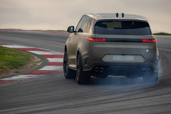 At times like these, you’re coming dangerously close to defying the laws of physics. Yet, with Becker behind the wheel, the Range Rover Sport SV attacks the final corner of the track like a bulldog on a chew toy, front end biting hard, back end maintaining a sideways approach angle, all four tires clawing into the tarmac and then spitting it out into the rearview mirror.