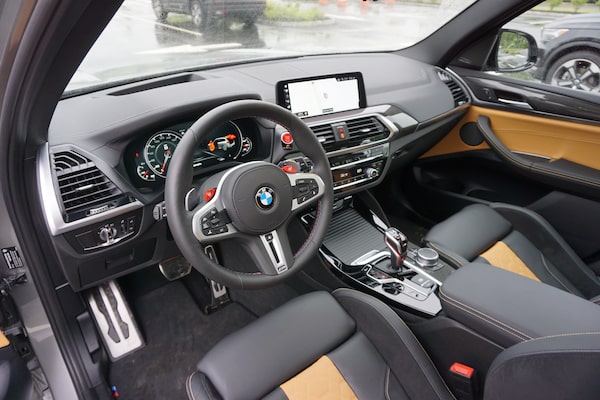 The transmission is an M-fortified version of the ubiquitous eight-speed, and power is routed to the wheels through an M xDrive all-wheel-drive system based on the M5s. On the X3/X4 Ms, the AWD is rear-biased, but there’s no 100-per-cent rear-wheel-drive setting.