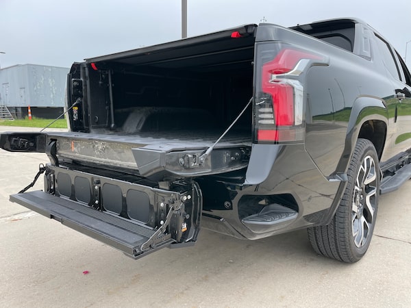 The step in the tailgate to the 2024 Silverado EV RST.Petrina Gentile/The Globe and Mail