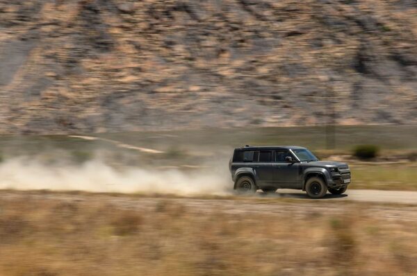 The course includes some fast bends, significant jumps and drop-offs, and deep sand that conspires to trap the Defender OCTA in its place. None of these characteristics prove insurmountable; they do serve to underline that this SUV is engineered for serious fun.