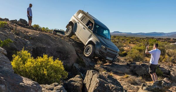 But this tells just part of the story. In fact, on the roughly 700-kilometre drive north from Cape Town, west toward the Atlantic Ocean, and then back down south, we have little chance to test these capabilities. All versions of the Defender OCTA we drive are fitted with 20-inch Goodyear Wrangler all-terrain tires with a theoretical 191-km/h limit.
