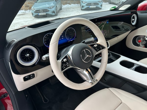 We won’t go deep here on the CLA’s previously described full-width dashboard screen that is powered by a new Operating System and User Experience that variously consult Google and Microsoft AI, as well as ChatGPT4o and Microsoft Bing, to establish a productive and harmonious working relationship between the car, its occupants and the outside world.