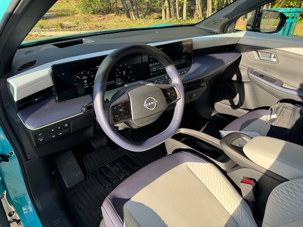 The front seats and dash of the 2026 Nissan Leaf.Petrina Gentile/The Globe and Mail