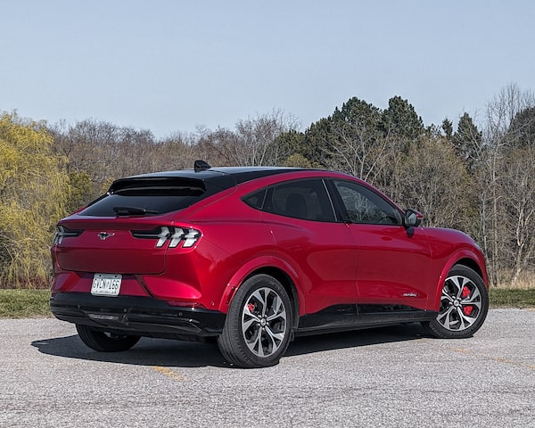 The slowest Mach-E will accelerate from zero-to-100 km/h in 6.2 seconds, but my tester made the leap in 5.1 seconds, which was plenty quick enough. (The GT-Performance will do it in 3.7 seconds. For comparison, top-end electric Teslas and Porsches can do it in almost half that time if you pay more than twice as much for them.)