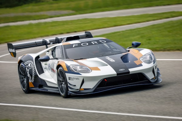 First things first: The GT Mk II is a track-only special edition with performance levels that will leave both the road car and the GTLM in the dust in most settings. The mid-mounted twin-turbocharged 3.5-litre V6 develops 700 horsepower, more than both the GTLM (about 495 hp) and the road car (650 hp). “Historically, you think, Oh, the racecar is a higher-performance version of the road car,” Holt explains. “That’s not the case. In fact, the racecar is sort of a lower-performance version, at least from a power perspective.”