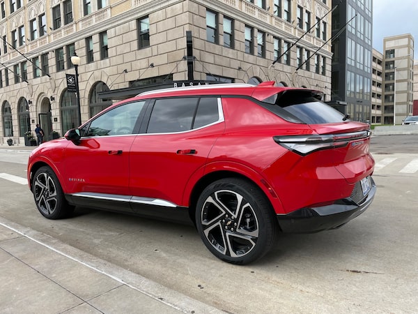The 2024 Chevrolet Equinox EV has a range of 513 kilometres for the front-wheel-drive version and 459 kilometres when equipped with all-wheel drive.Petrina Gentile/The Globe and Mail