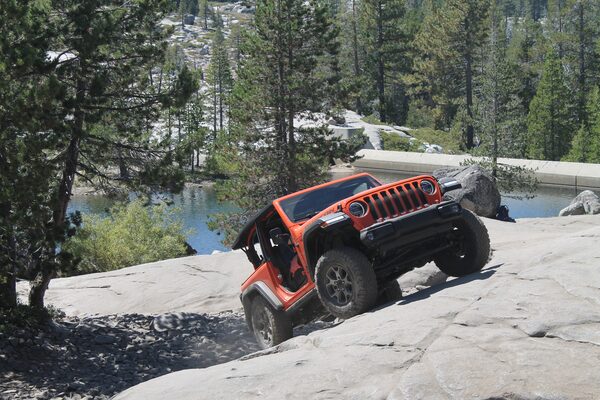 Jeep’s most capable vehicle is the Wrangler, and its most off-road capable Wrangler is the Rubicon, named after this boulder-strewn trail in California’s Sierra Nevada. It’s 19 kilometres of rocks and sand, and even now at the end of the day when I close my eyes, I can hear the tortured scraping of steel: two tonnes of Jeep grinding across a boulder, only one wheel against the ground, pulling itself up and around the trail.