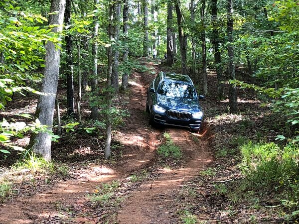 And with that, we were sent out for a one-hour off-road trail ride. This wasn’t the easiest of trails, made more difficult by some slippery patches. The off-road driving mode labelled “rock” increased ground clearance by 40 mm, the transmission was set to M2 and the dynamic stability control deactivated. The combination of its two-rear-axle air suspension and electronically controlled rear-differential lock-and-hill descent system helped keep the X5 moving in all directions, while its rugged underbody protection dealt with everything that got in its way. It was all so effortlessly done, eased by a high-definition front camera system, shown on the more central of two 12.3-inch digital displays.