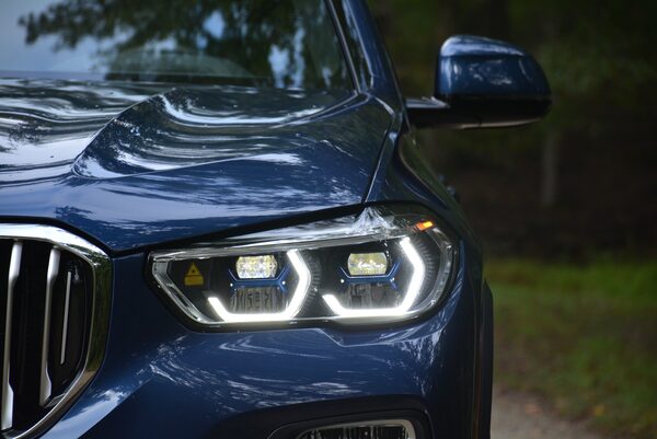 Subtle tweaks in its body lines, the enlargement of its signature kidney grille and slight growth in wheelbase, width and length has matured the X5 in a sophisticated and modern way. BMW has strategically combined form and function with the X5, highlighted by the available BMW Laserlights spotlight with Selective Beam, featuring blue x-shaped elements that split the hexagonal light sources inside the headlights.