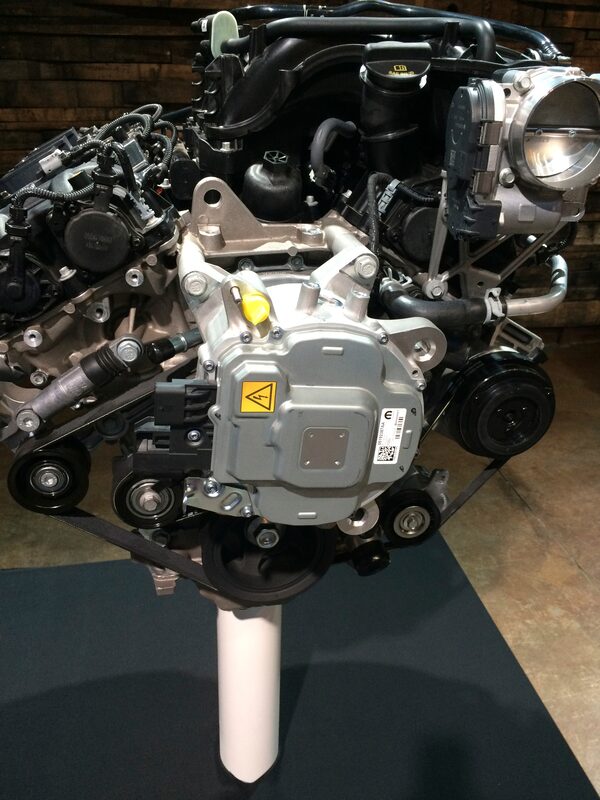 The eTorque system even helps the eight-speed transmission work better: During upshifts, the EMG momentarily slows the engine, which makes the shift smoother, and in the process, it sends a little pulse of electrical energy back into the 48V battery. The EMG even helps extend transmission life, Spohn says, because it’s now doing work that was previously done within the transmission.