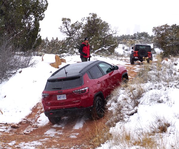 At 7-Mile Rim the early-onset winter does throw one wrench in the works. Our planned route originally included a steep climb that’s now sheathed in sheet ice and has to be bypassed. No matter. The remainder of the route still throws up more sand, snow, boulders, rock ledges, loose-surface ascents and precipitous descents than even most Jeep owners would ever tackle on purpose – let alone owners of the “soft-roader” competition.