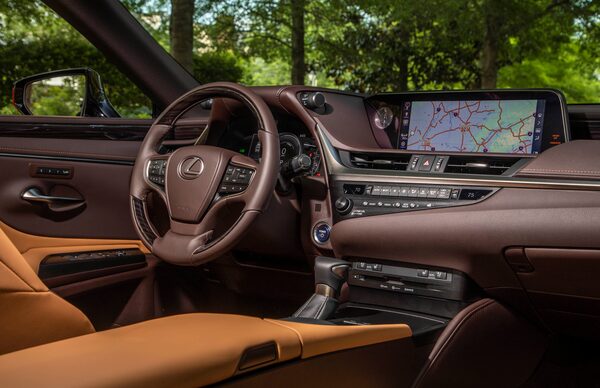 There are 10 different versions of the new ES: a regular V-6 engine and a hybrid engine, each with four available trim levels, as well as two levels of the F-Sport package. The F-Sport isn’t any more powerful, but it does include active suspension and 19-inch wheels, as well as Sport and Sport Plus drive-mode settings to add to the regular car’s three drive modes.