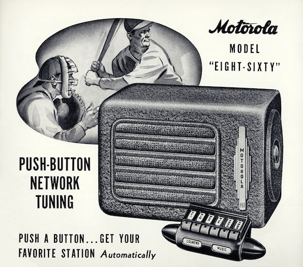 Brothers Paul and Joseph Galvin’s first radio ran on six vacuum tubes, took up about 10 litres of cargo space, received AM signals only, was housed in a wooden case and was powered by two high-voltage batteries stashed under the passenger seat, plus the car’s battery. It cost US$130 at a time when an entire Ford Model A cost US$540.