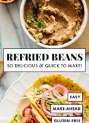 Fresh cilantro livens up these refried beans, and a squeeze of lime juice makes them taste more complex. Flavor aside, these refried beans are also a healthy source of plant-based protein and fiber (12 grams of each per serving). You can read up on pinto bean nutrition here.