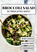 Have made this many times & everyone loves it. We love salads without mayo, they are much lighter & easy to take to a pot luck where it might be unrefrigerated for a time. Without the cheese it’s perfect for my vegan friends. I was unaware a raw broccoli salad could be so good. There’s almost no waste since the stems can be included. Thank you for a tremendous salad!