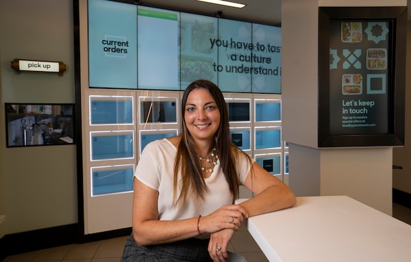 Karalyn White, executive director of corporate affairs for Paramount Foods is seen at a Box'd restaurant in Toronto on Sept. 15, 2020.Peter Power/The Globe and Mail