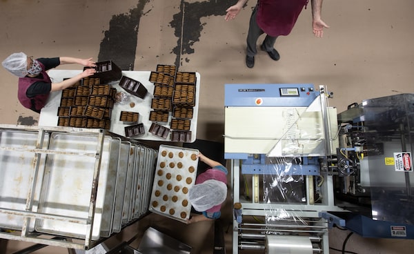 Freshly baked and cooled cookies get packaged.The Globe and Mail
