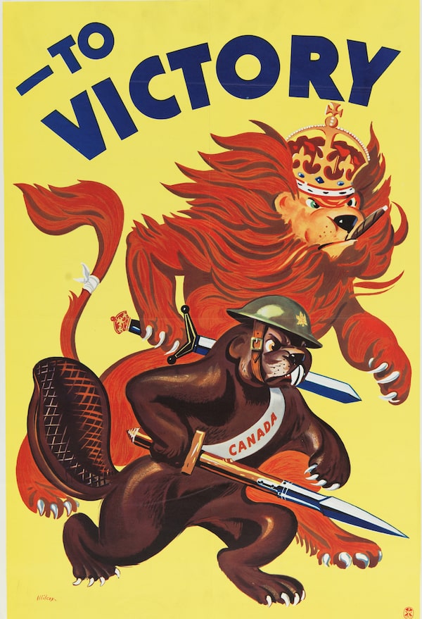 A wartime poster shows Canada (the Beaver) standing with Britain (the Lion) and ready for battle.Canadian War Museum (CWM 20070104-083)