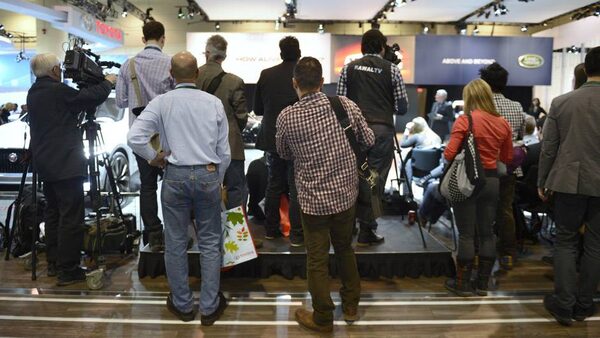 Media attending the preview day move from manufacturer to manufacturer in large groups as vehicles are unveiled.Fred Lum/The Globe and Mail