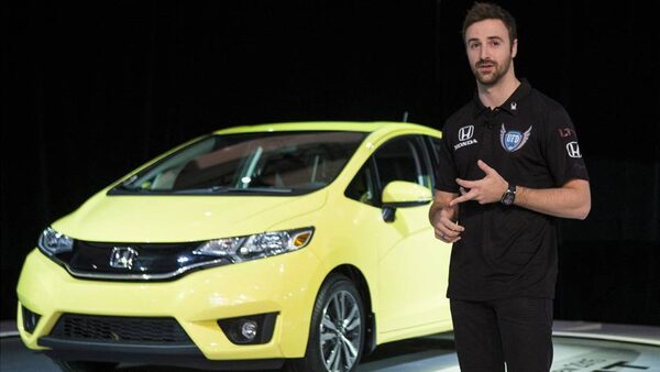 Canadian IndyCar driver James Hinchcliffe promotes the Honda Fit at the Canadian International Auto Show.Chris Young