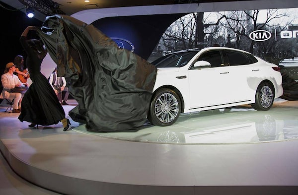 The Kia Motors Corp. Optima vehicle is unveiled during the 2015 New York International Auto Show in New York, U.S., on Wednesday, April 1, 2015.Michael Nagle/Bloomberg