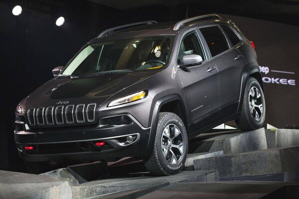 A 2014 Jeep Cherokee drives across a stage after being unveiled at the New York International Auto Show in New York, March 27, 2013.LUCAS JACKSON/Reuters