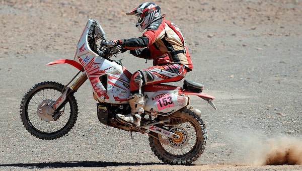 Canada's Patrick Trahan rides his Honda during the 5th stage of the Dakar 2010 between Copiapo and Antofagasta, Chile, on January 6, 2010. Chile's Francisco Lopez Contardo won the stage, France's Cyril Despres took the second place and leads the race and France's David Fretigne the third. Casteu, who was second this morning, broke his leg during this stage.GABRIEL BOUYS/AFP / Getty Images