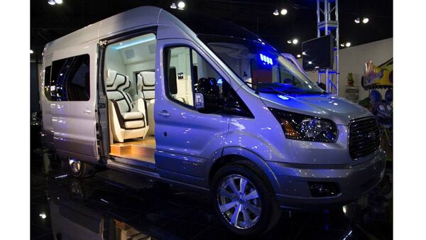 The Ford Transit Skyliner concept vehicle is “a private jet on wheels,” claims Ford. it will have “four dynamic experience modes – theater, business, reception and travel.”
