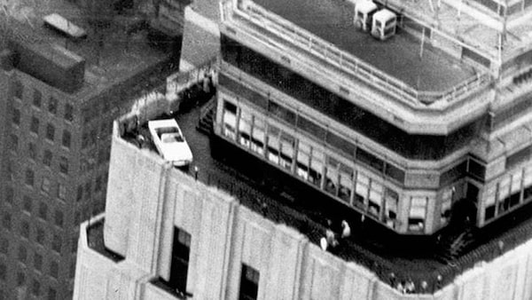 This is the second time a car has been displayed at this height. The same company, DST Industries, placed a 1966 Mustang convertible on the observation deck in 1965. Then, only the steering wheel gave them any trouble, forcing them to tip that section of the car to fit into the elevator.