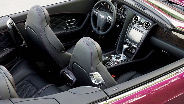 The four-seater convertible's hand-crafted cabin has soft-touch leather hides available in 17 colours, cool-touch metals and deep-pile carpets. Seven wood veneers are available.