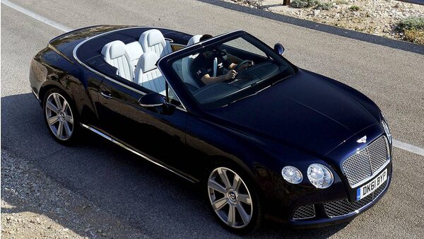 2012 Bentley Continental GTC in "extreme silver." The vehicle has a top speed of 314 km/hour. It can reach a speed of 100 km/hour in 4.8 seconds. A 2011 Porsche 911 Turbo S ($202,655) will get to 100 km/hour in just over 3 seconds.
