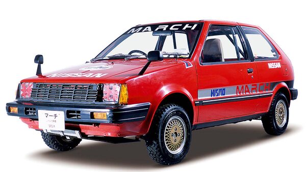 The first generation of Nissan's March was introduced in 1982. The popular car received its first design modifications for the 1985 year (pictured).