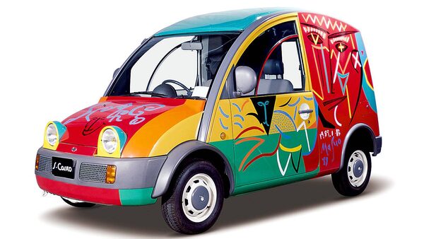 Nissan's playful yet practical S-Cargo was launched in 1989. As well as the standard roof, a canvas top was available. This vehicle's paintwork was designed by Masuo Ikeda (1934-1997), a versatile artist whose talents included sculpture and film direction.