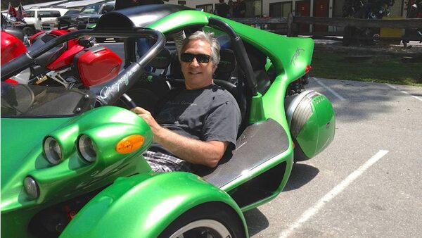 Drive columnist Peter Cheney samples a Campagna T-Rex three-wheeler at the Tail of the Dragon. Made in Quebec, The T-Rex is powered by a 1.4-litre motorcycle engine.Peter Cheney/The Globe and Mail