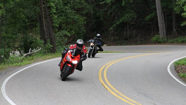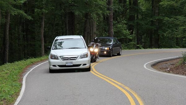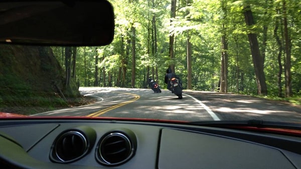 Columnist Peter Cheney's son Will follows a pair of motorcyclists through one of the 318 curves on the Tail of the Dragon.Peter Cheney/The Globe and Mail