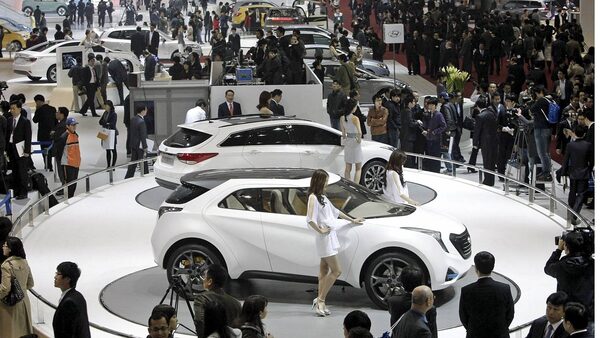 A general view shows the Seoul Motor Show during a press preview in Goyang, north of Seoul on March 31, 2011.JUNG YEON-JE