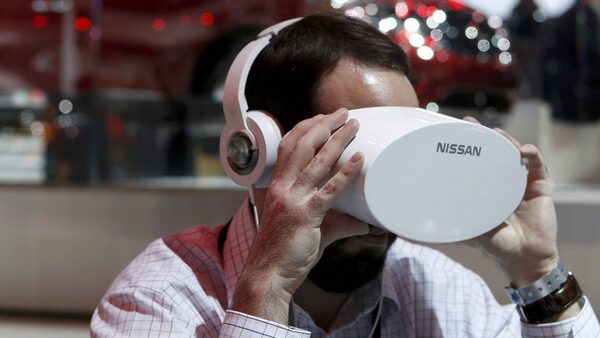 A show attendee looks into a Nissan IDx, a 3-D display device, during the press preview day of the North American International Auto Show in Detroit, Michigan January 14, 2014.REBECCA COOK/Reuters