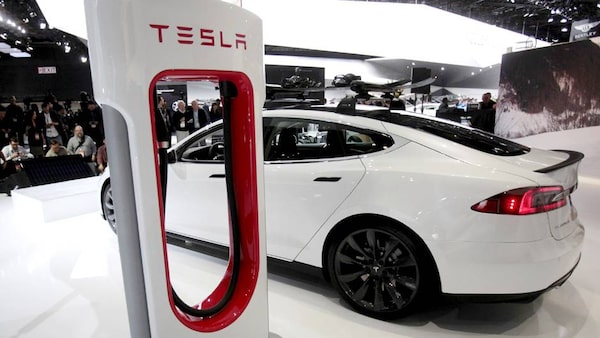 A Tesla S electric car and a charging station are displayed during the press preview day of the North American International Auto Show in Detroit, Michigan January 14, 2014.REBECCA COOK/Reuters