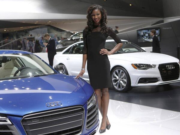 Model Vonnita Jones poses next to an Audi R8REBECCA COOK/Reuters