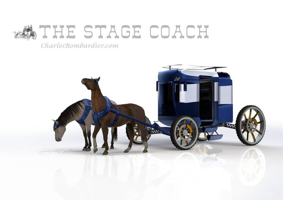 The Stage Coach blends modern technology with a traditional means of transportation. The 21st century vehicle depicts two eras: pulled by horses, just like the old times, but with high-tech features, such as an electronic stability system and panoramic skylight. The Stage Coach concept could eventually move another step ahead by introducing a variant that would be controlled by computer.