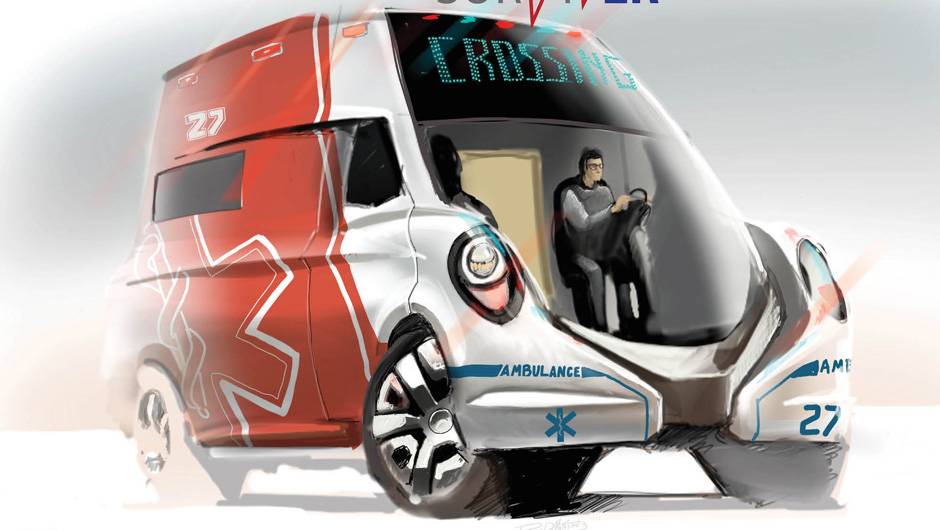 The SurvivER is a prototype of a new generation of ambulance that would be quieter, smoother to ride, and easier to work in, compared with existing models.