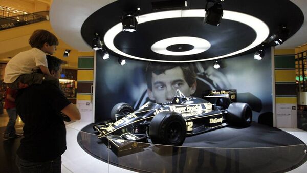 Visitors look at the Ayrton Senna John Player Special F1 car during an exhibition to mark the 20th anniversary of the death of Brazilian triple Formula One champion Ayrton Senna in Sao Paulo April 10, 2014.PAULO WHITAKER/Reuters