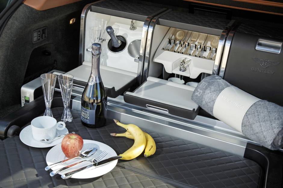 The options list reads like the catalogue at a Bonhams art sale. Line items include a $33,000 picnic set with crystal champagne flutes, a $34,000 satin paint job, a $7,000 set of 22-inch wheels, but the pièce de résistance – the thing that breaks new ground in the quest to delight the ultra-rich – is a dashboard-mounted tourbillon clock made by Breitling for Bentley. They only make four per year, and ticking that option box will add €150,000 (they’re only priced in Euros) to the final cost. You can have the clock in gold or platinum or whatever other shiny thing pleases you the most.