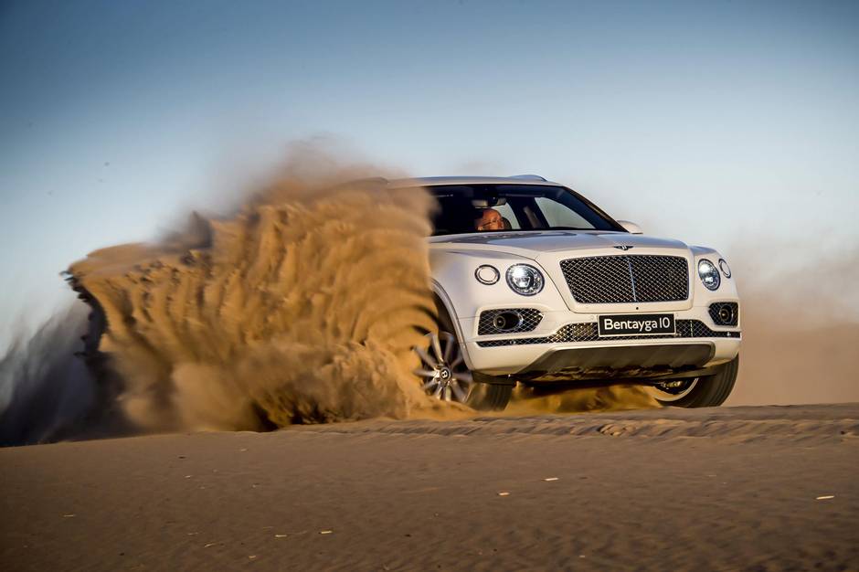 Gravity’s gonna do all the work now. The $266,000 Bentley SUV formerly under my control picks up momentum and slides sideways down a wall of sand. The 2.5-tonne truck is falling at a 45-degree angle down and across the face of a dune. Gravity has full control.